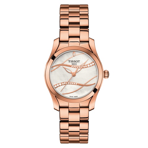 There is a certain grace in the way a silk ribbon swirls in the wind. It is that elegance and lightness that inspired the design of the Tissot T-Wave. The curves of the case and lugs follow the harmonious lines formed by the fluid movement of a ribbon. The pure dial features refined details such as hands resembling skeletonised leaves and a teardrop index set with white or black mother-of-pearl at 12 o’clock. The Tissot T-Wave is a piece of jewellery that can be worn at any occasion, adding a touch of sophistication to a daily outfit or complimenting a cocktail dress for a special occasion.